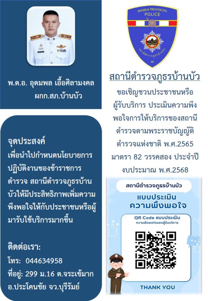 วันที่ 30ธ.ค.67 เวลา ๐๙.00.น. ร.ต.ท.สถิต อุปนิ รอง สว.(ป) สภ.บ้านบัว อำนวยความสะดวก ช่วยเหลือผู้ประส